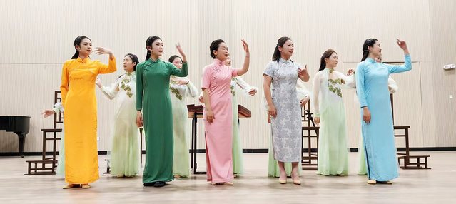 除了饰演张桂梅的徐妮娜老师之外,其他角色均由徐州幼儿高等师范学校的师生出演,学生从对徐州琴书一无所知的“小白”,到今天的粉墨登场,凝结了师生对教育事业、对非物质文化遗产的无数心血和热爱。观看演出的师生由衷感叹:“我们今晚接受了一次感人至深的师德师风教育,今年将迎来第40个教师节,这也是一堂教师行业的荣誉课!”