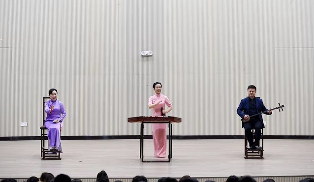 为了积极落实学校新时代本科教育思想大讨论活动实施方案,用中华优秀传统文化教育人,用时代孕育的伟大教育家精神感染人,用大思政的课堂培养人,3月28日师范学院组织特邀徐州琴书代表性传承人徐妮娜老师携《时代楷模张桂梅》演出团队赴师范学院音乐厅首演。徐州工程学院副校长王逢博、学工处处长耿中华到场慰问了演职人员,师范学院四百余名师生观看了演出。