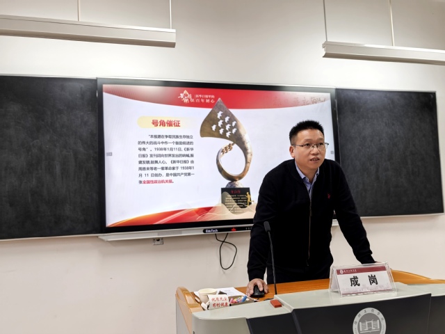 2024年12月26日,新华日报社徐州分社社长、主任记者成岗应邀在敬中楼210教室作题为“‘号角催征’——新华日报86年报史中的中国新闻史”的讲座。此次讲座由学术副院长李冬香主持,24级小学教育专业学生参加。